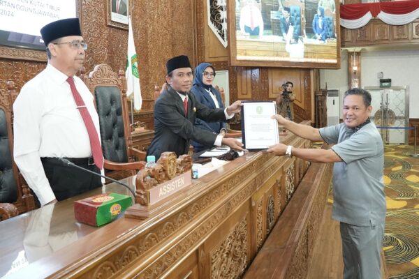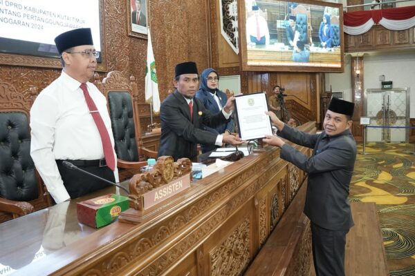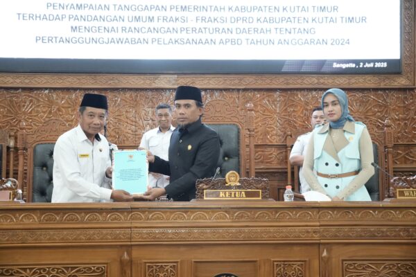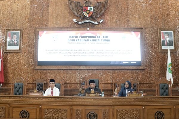DPRD KUTIM, Rabu, 2 Juli 2025 — DPRD Kabupaten Kutai Timur menggelar Rapat Paripurna ke-43 dengan agenda mendengarkan tanggapan Pemerintah Daerah terhadap pemandangan umum fraksi-fraksi DPRD Kutim atas Rancangan Peraturan Daerah (Raperda) Pertanggungjawaban Pelaksanaan APBD Tahun Anggaran 2024. Rapat yang berlangsung di Ruang Sidang Utama DPRD Kutim ini dipimpin langsung oleh Ketua DPRD Jimi, didampingi…