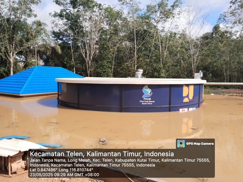 BP40, Kutai Timur – Sistem Penyediaan Air Minum (SPAM) yang dibangun oleh Dinas Pekerjaan Umum dan Perumahan Rakyat (PUPR) bersama Perumda Tirta Tuah Bumi Kutai Timur di Desa Marah Haloq, Kecamatan Telen, kembali terendam banjir pada Jumat pagi, 23 Mei 2025.