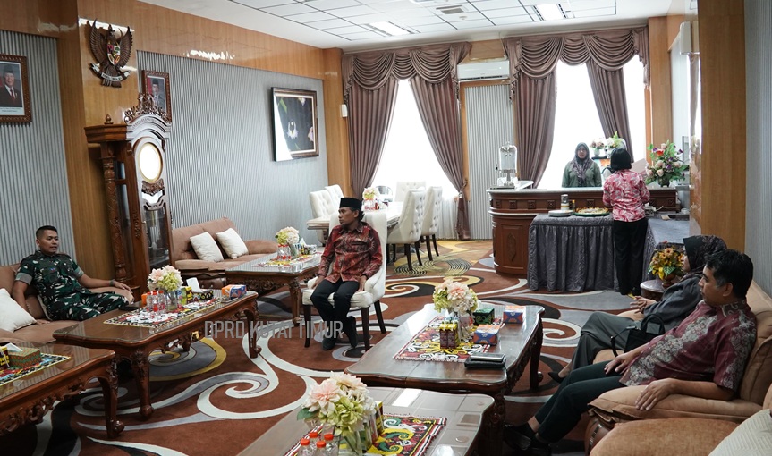 Ketua DPRD Kutai Timur, Jimmi, ST., MT., didampingi Wakil Ketua I Sayid Anjas, SE., MM., dan Wakil Ketua II Hj. Prayunita Utami, S.Tr.Keb., M.Kes., menyampaikan apresiasi dan penghargaan kepada TNI AD Kodim 0909/KTM atas pelaksanaan TMMD yang dinilai sangat menyentuh kebutuhan mendasar masyarakat di wilayah pedesaan.