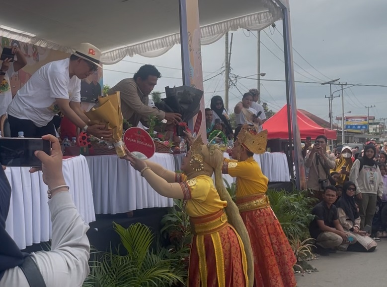 Ketua DPRD Kutai Timur Jimmi dan Bupati Ardiansyah Sulaiman tampak duduk di tribun utama, menyaksikan kirab dengan penuh antusias. Saat rombongan Badan Pendapatan Daerah (Bapenda) tiba di depan tribun, mereka menampilkan tarian pembuka sebelum dua peserta perempuan naik ke area depan tribun untuk menyerahkan cinderamata. Ketua DPRD dan Bupati menyambutnya dengan tangan terbuka disertai ucapan terima kasih dan apresiasi atas semangat seluruh peserta.