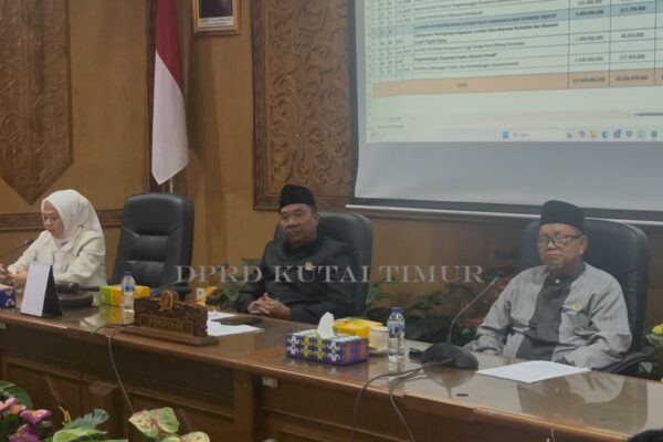 DPRD KUTIM, SANGATTA – Dewan Perwakilan Rakyat Daerah (DPRD) Kabupaten Kutai Timur menggelar Rapat Paripurna dengan agenda penyampaian laporan pelaksanaan Reses III Masa Persidangan III Tahun Sidang 2024–2025, Rabu (17/9/2025). Rapat dipimpin Ketua DPRD Jimmi ST MT dan dihadiri para anggota dewan, Asisten Administrasi Umum Sudirman Latief, pejabat OPD, Forkopimda, serta undangan. Ketua DPRD Jimmi…