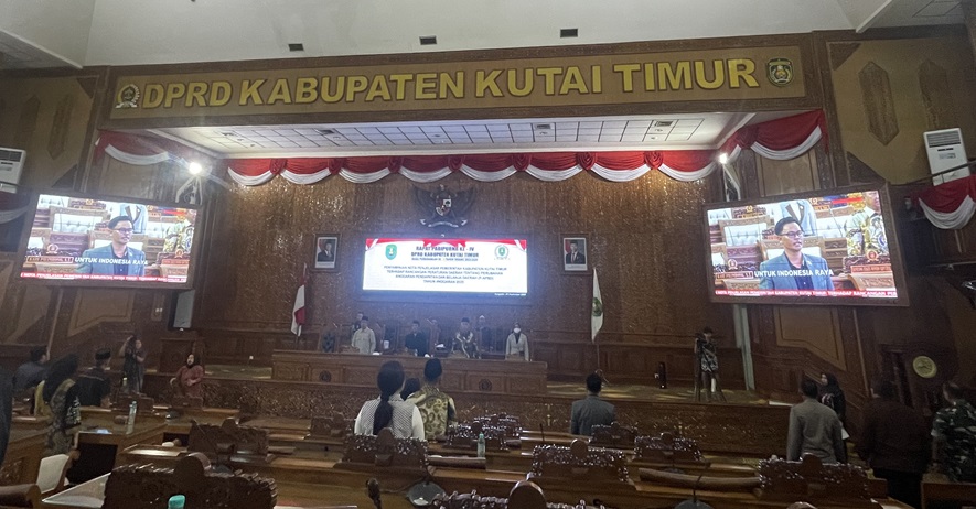 DPRD KUTIM – DPRD Kutai Timur melaksanakan rapat paripurna pada Kamis (25/9/2025) pukul 20.00 WITA di ruang utama. Rapat dipimpin Ketua DPRD Jimmi, didampingi Wakil Ketua I Sayid Anjas dan Wakil Ketua II Hj. Prayunita Utami, serta dihadiri 22 anggota dewan. Turut hadir Bupati H. Ardiansyah Sulaiman, Plt Sekwan Hasarah, serta sejumlah pejabat Sekretariat Dewan dan undangan lainnya.